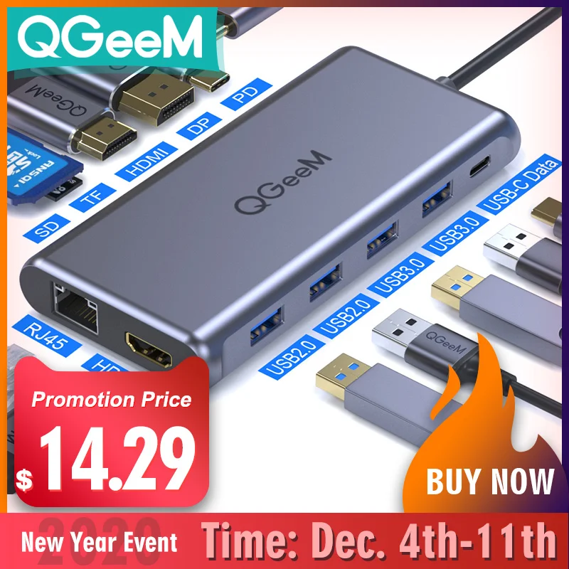 Best Product QGeeM USB C Hub for Macbook Pro Triple Display Type C Hub to Dual 4K HDMI & DP Micro SD Card Readers RJ45 Aux PD USB Hub Adapter Order Now!