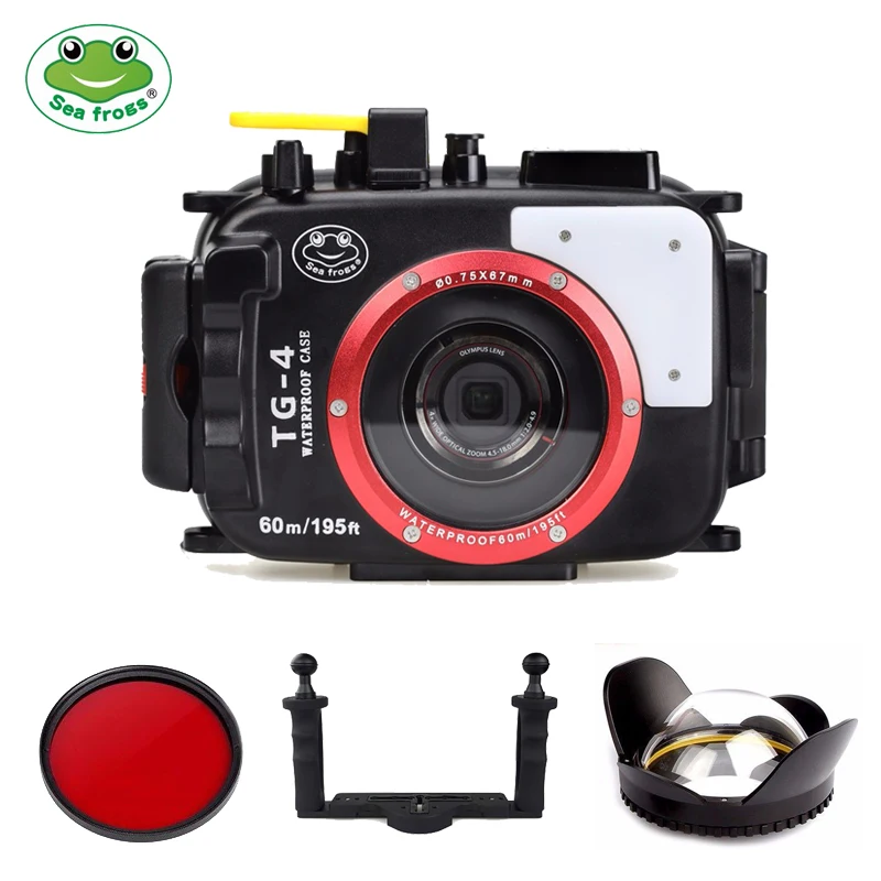 Best Price Of SeaFrogs TG4 60m/195ft Underwater Diving Waterproof Housing Camera Case for Olympus TG-4 Waterproof Camera Bags with Red Filter